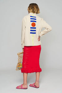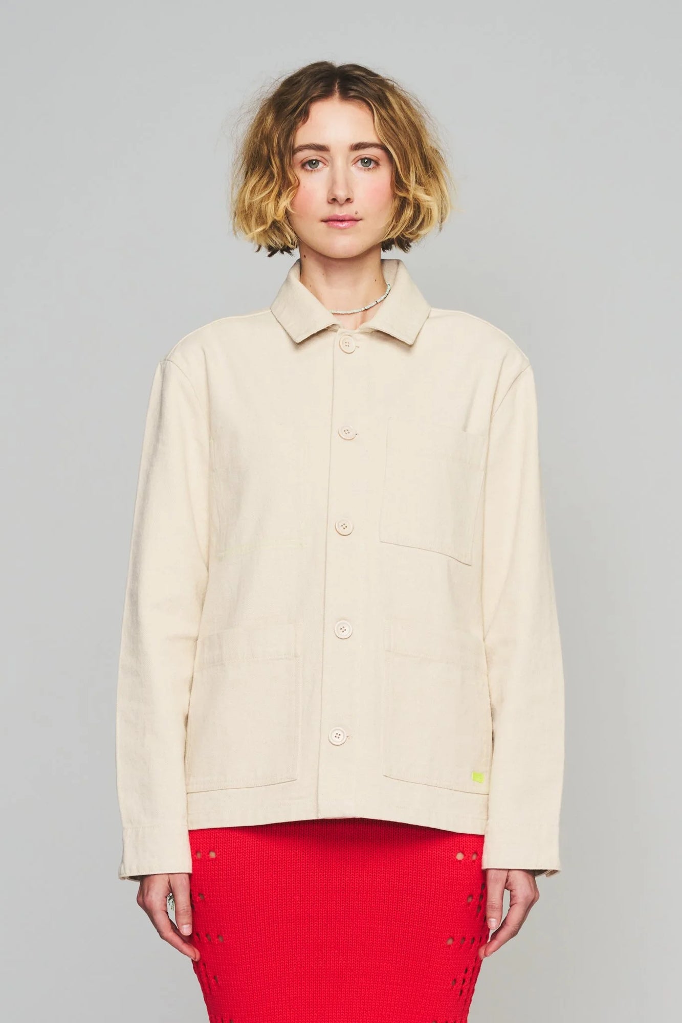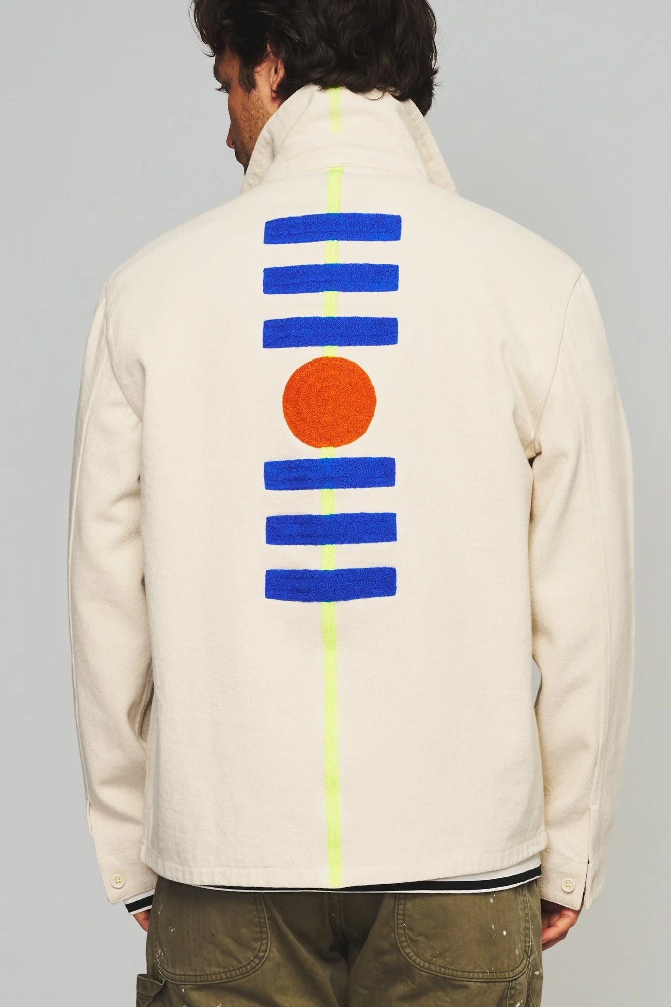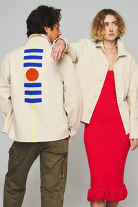Our chore coats are made from pre-shrunk, 100% cotton twill. Because each garment is handmade, natural idiosyncrasies and imperfections make each piece unique and one-of-a-kind. Threads are organically dyed to achieve vibrant colors. To preserve the integrity of the color and delicate stitching, all garments are dry clean only.